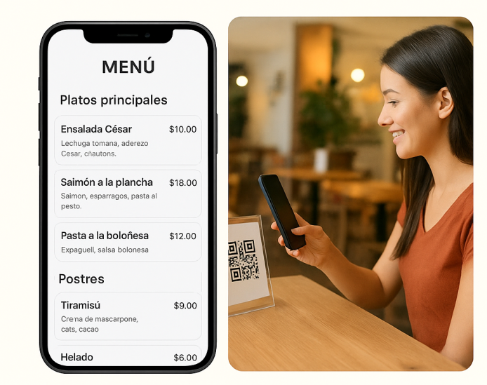 Olvídate de imprimir menús una y otra vez. Con nuestros menús digitales con código QR, tus clientes podrán ver tus platillos desde su celular de manera rápida, higiénica y atractiva.